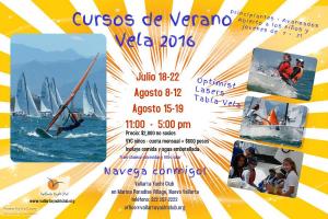 Ven a navegar con nosotros este verano! Están disponibles tres semanas de clases de vela para estudiantes de 7 - 21 años. Nuestros instructores son altamente capacitados y tenemos embarcaciones disponibles para los cursos de navegación.