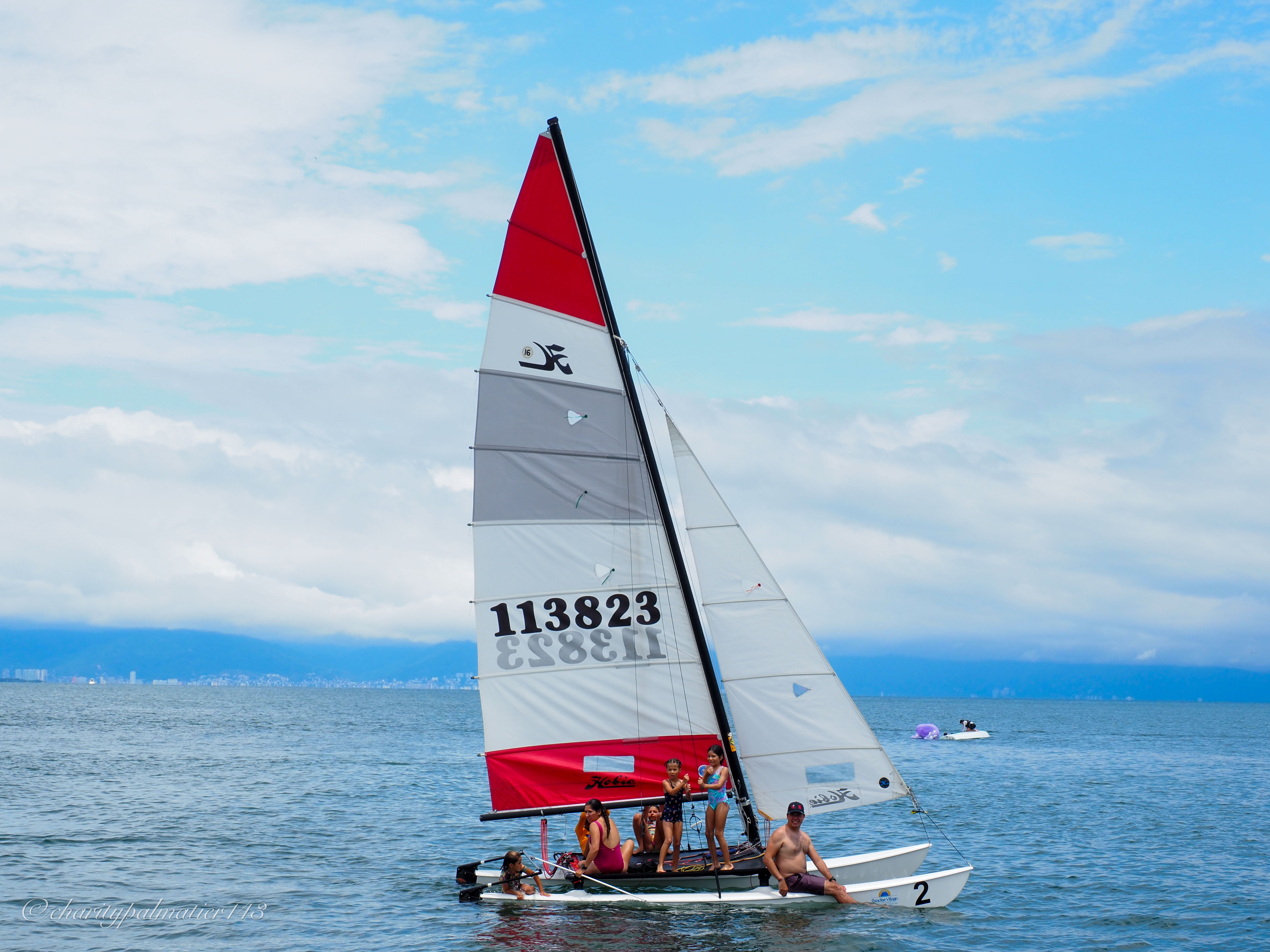 We rallied 25 members and guests, both kids and adults, and headed out into beautiful Banderas Bay aboard a variety of member and club boats. The destination: La Manzanilla Beach, a tranquil spot just north of La Cruz, perfect for dropping anchor, sharing a picnic lunch and munchies and enjoying the warm afternoon together. There was no shortage of water fun—tubing behind RIBs, paddleboarding, swimming, and all kinds of splashing around in the clear, warm bay waters. We sailed a Hobie 16 over behind our "Mothership," the beautiful Beneteau Hey Ya, and everyone took turns on it when we weren't feasting on the cornucopia of potluck foods that everyone brought.